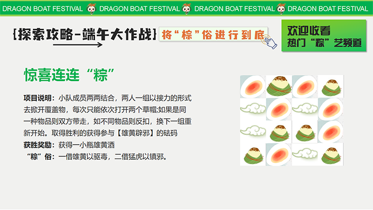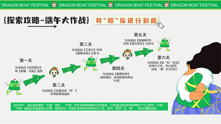 端午丨“粽趣横生·重拾玩心”疯狂游园会、端午粽动员、巧手端午 团建目的:休闲放松 增强认同归属 增强凝聚力 弘扬开云最新官方 适合团队: 所有团队 初创融合 成长型团队 成熟型团队 高阶领导 年轻化团队 基层员工 公司全员 党政机构 适合人数:15~300 活动天数:半天 1天 推荐场地:景区古镇 公司现场