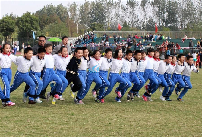 10人一队,每队站成一排,相邻队员的两腿用绳带绑在踝关节上方附近,形成了一个整体的大“一”。这个大“一”要顺利到达终点需要其中的每一个人都必须和整体保持一致。否则,个人就有可能摔倒。而大“一”就有可能停滞不前了。