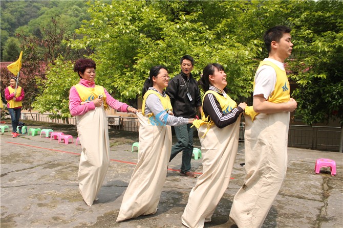 项目简介 项目规则 目的及意义 心得体会 项目图片 袋鼠跳游戏流程与目标 每组的第一名队员将布袋套至腰部,听教练发令后向第二名队员前进,中途布袋不得脱离双腿,至第二名队员时脱去布袋,由第二名队员套上向自己队伍前进,如上述循环至最后一名队员。 袋鼠跳游戏规则 比赛过程中,如有摔倒可自行爬起,但布袋必须套在腿上,如有滑落必须重新套上后方可继续比赛,至下一名的队员完全套好前,整个交接过程必须在跑道端线以外进行,不能越线。 袋鼠跳游戏目的及意义 让队员体验自己解决问题的能力,同时培养勇敢顽强和决不轻言放弃的拼搏精神. 袋鼠跳心得体会 1)培养团队精神,活跃现场气氛; 2)培养勇敢顽强和决不轻言放弃的拼搏精神; 3)团队内部的有效交流、沟通以及队员之间的相互信任感; 4)培养在困难条件下的团队学习能力和决策能力。 袋鼠跳游戏图片 袋鼠跳实施案例 2018年11月10日 蓝光优居公司“凝心聚力 共创未来”团队建设活动 2018年11月10日 蓝光优居公司“凝心聚力 共创未来”团队建设活动 2018年1月20日 海通恒信四川分公司“同聚梦想 共享缤纷”家庭同乐日 利信快捷金融“凝心聚力 共筑精彩”体验式培训 华控图形迎新春主题闯关活动 上一篇:拓展游戏【杀人游戏】游戏规则介绍 拓展项目杀人游戏流程玩法 下一篇:拓展游戏【坐地起身】游戏规则介绍 拓展项目坐地起身流程玩法 热门拓展训练项目推荐 拓展游戏【摸石头过河】游戏规则介绍 拓展项目摸石头过河流程玩法 拓展游戏【吹乒乓球】游戏规则介绍 拓展项目吹乒乓球流程玩法 拓展游戏【喊数抱团】游戏规则介绍 拓展项目喊数抱团流程玩法 拓展游戏【动力圈绳】游戏规则介绍 拓展项目动力圈绳流程玩法 拓展训练项目 众志成城 游戏规则及玩法 拓展游戏【心有灵犀猜字】游戏规则介绍 拓展项目心有灵犀猜成语_心有灵犀游戏词汇(图文)