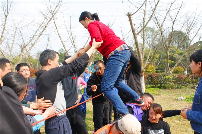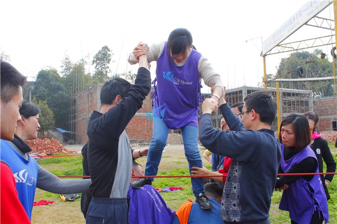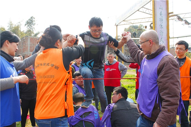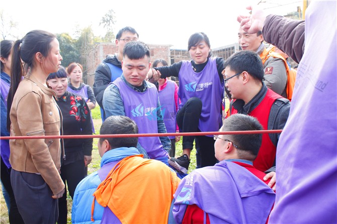 所有人员一起完成,以最快的时间,丛绳子一方上空穿越到另外一方,还不得与绳子触碰,一旦触碰必须返回。学员在翻越警戒线时不能使用危险动作,以免造成危险;学员在托住上面翻越的学员时一定要抓稳,保护好自己的队友;必须听从培训师的指令。