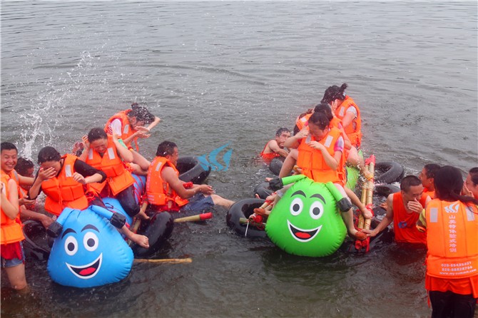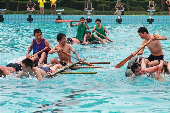 每队安排规定数量的队员进行水上充气床上划水接力比赛。